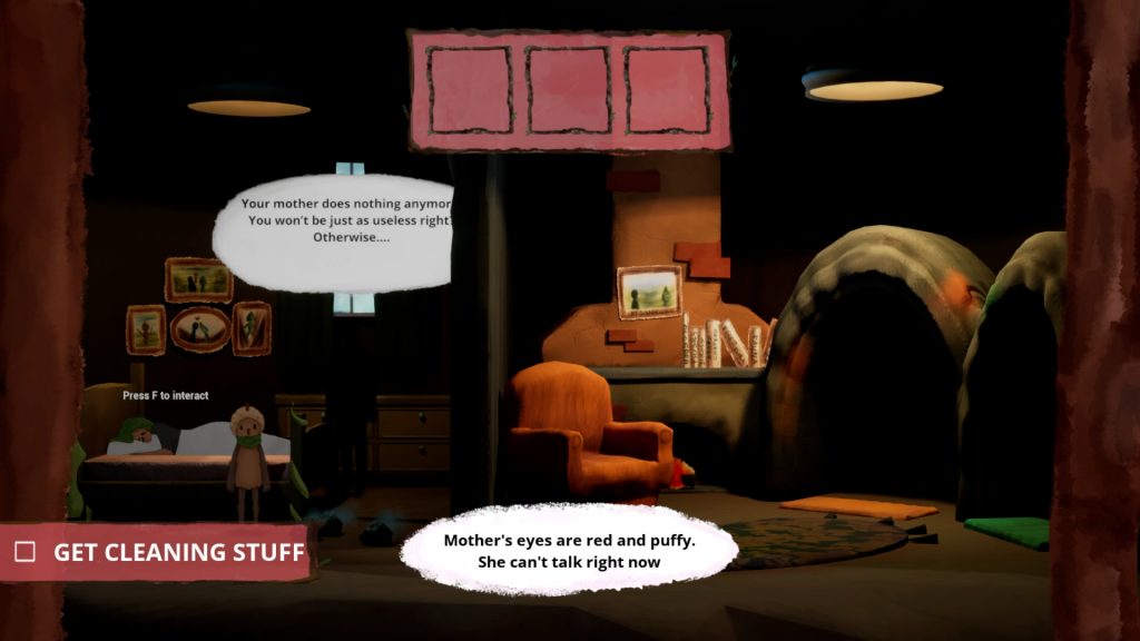 “Tell Me What’s Real” is a 3D third-person video game that deals with the themes of abduction and the processing of childhood trauma. The game takes the player into an immersive world in which reality and fantasy become blurred as the child confronts their fears and searches for a way back home.